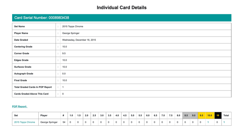 - 2015 Topps Chrome #54 George Springer Rookie Beckett 10 PRISTINE