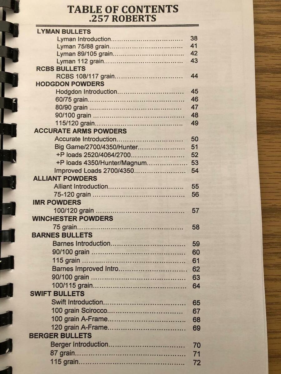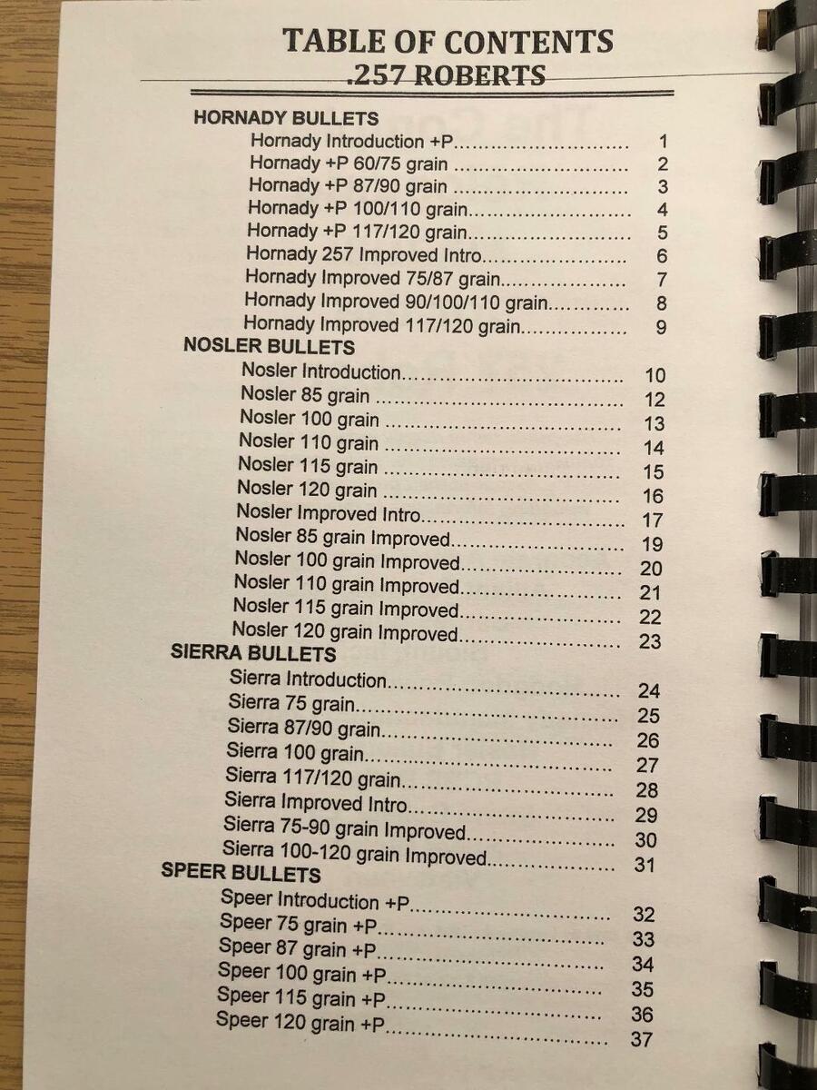 2016 The complete reloading manual for the .257Roberts, 75 pages, New latest edition This manual contains 1872 Loads, 57 bullet designs, 63different powders. Data in this manual is comprised from