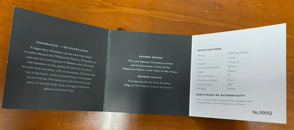 - 2017 Nieu S$2 Star Wars Classique Chewbacca NGC PF70 Ultra Cameo Avec CoA