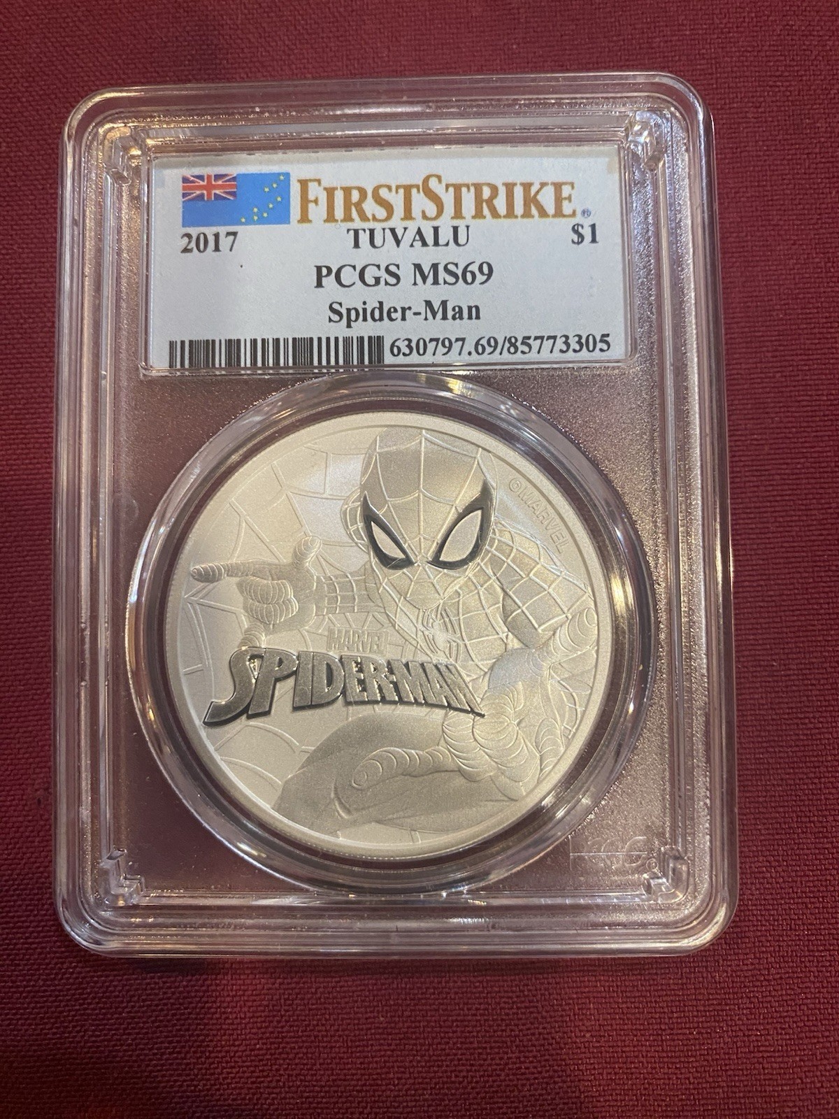 2017 Tuvalu Spider-Man FIRST STRIKE 1 Oz Silver Dollar-PCGS MS69