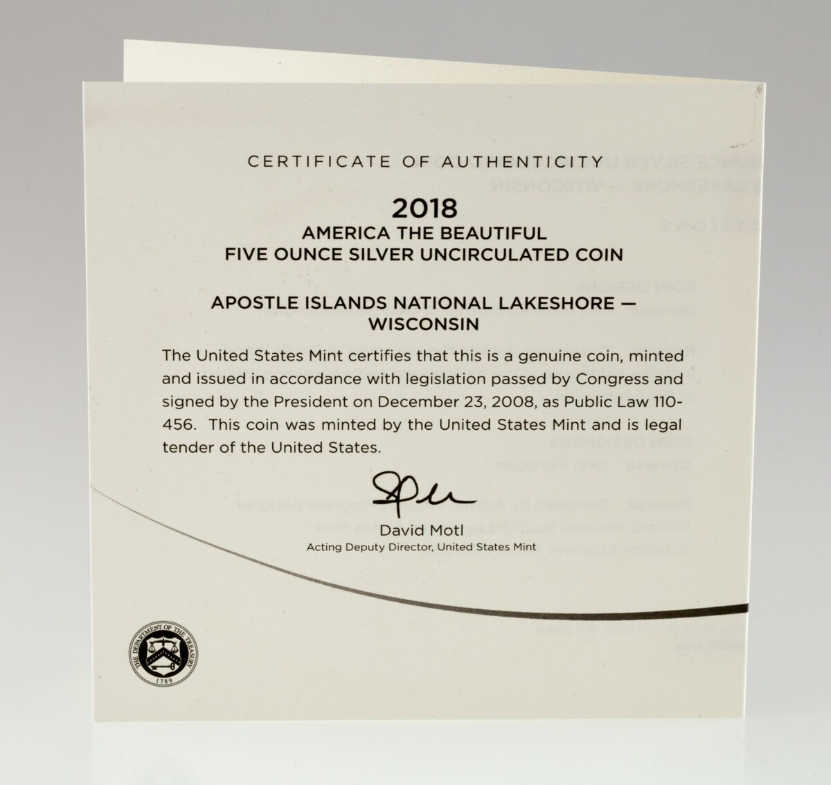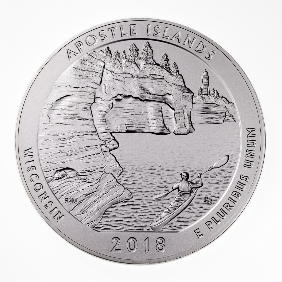 2018 5 onzas. Ronda de plata ATB Apostle Islands Nat'l Lakeshore con caja y certificado de analisis