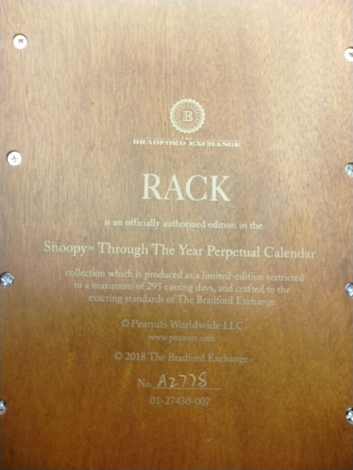 - 2018 Bradford Exchange Snoopy Through The Year Perpetual Calendar numbers