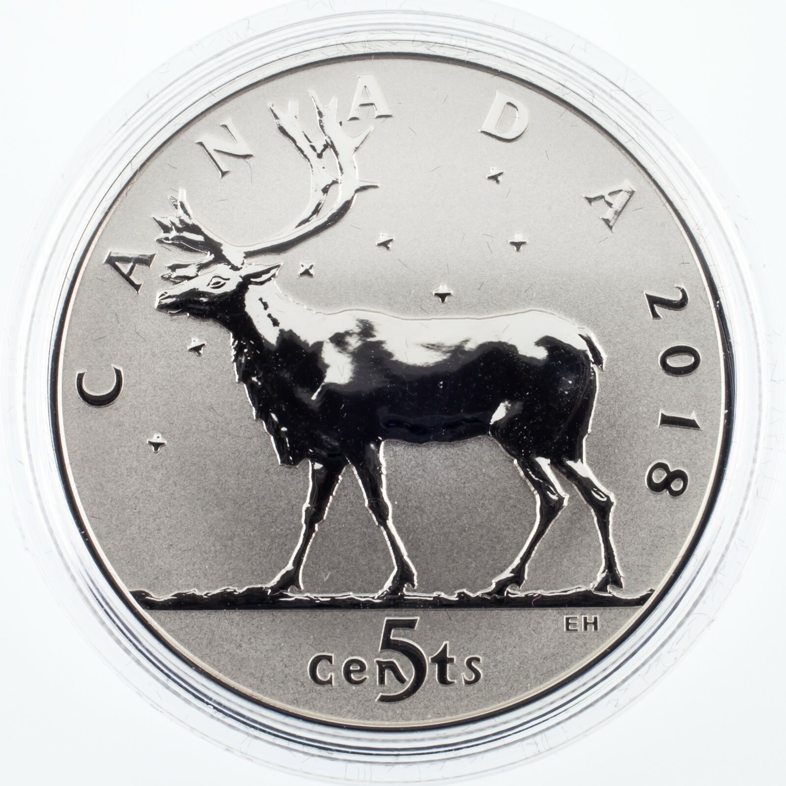 Each coin in this three-coin set is 99.99% pure silver, with a diameter of 38 millimetres and a nominal metal weight of 31.39 grams. All three coins feature unused reverse designs by Canadian artist Emanuel Hahn, who proposed them for new Canadian coinage issued in 1937. They include: a 25-cent coin design featuring a polar bear beneath the Aurora borealis in the starry northern sky; another 25-cent coin design featuring a goose in flight, backed by the Big Dipper asterism in the night sky; and a 5-cent coin design featuring a side-profile view of a caribou, also backed by the Big Dipper. The obverse features the effigy of King George VI by T.H. Paget.