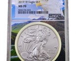 - 2019-W S$1 Burnished Silver American Eagle Graded by NGC as MS70 Eagle Pic Core
