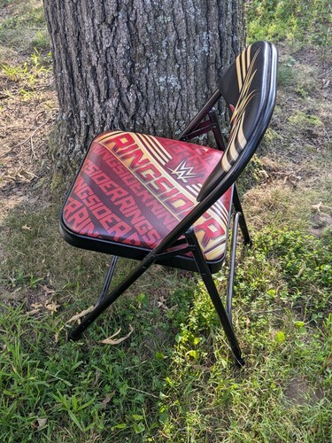 This WWE WWF Ringsider Black Folding Chair is perfect for any wrestling fan. The chair is black in color and made in the United States and is perfect for use at home or at a wrestling event. The chair is designed for wrestling fans and is a must-have for any WWE collector.