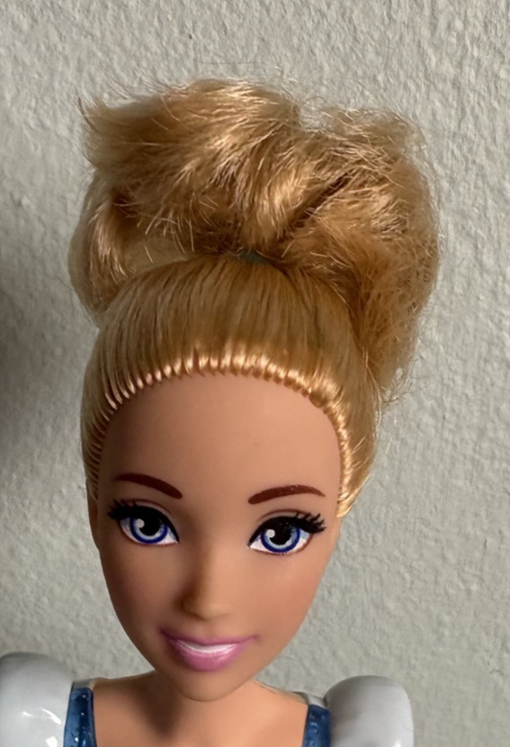 2022 Mattel Disney Cinderella Doll 11 1/2" Original Dress HLW06 S231. She had some ink on the back of her neck that we could not completely remove, so we painted over it - See Photos for further description