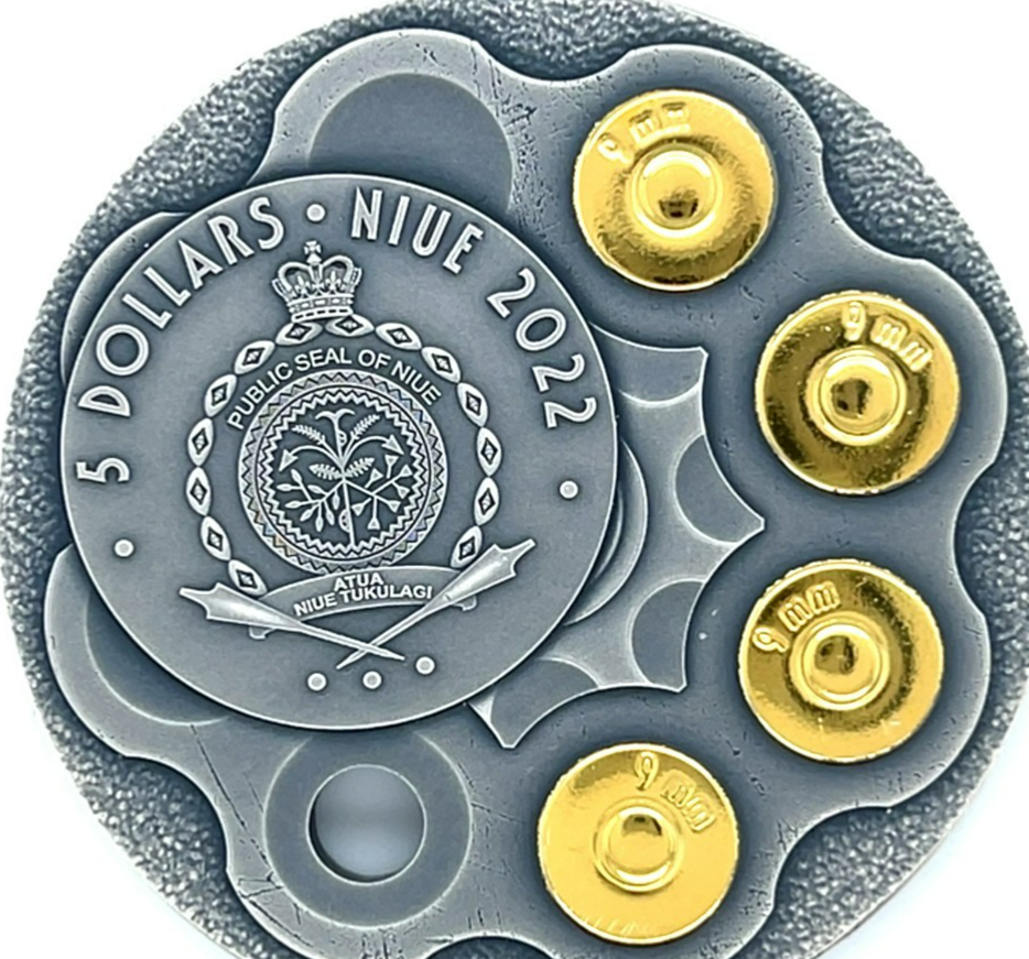 - 2022 Niue Dollar Coin, 2 oz Silver Antique The Gangsters, John Dillinger