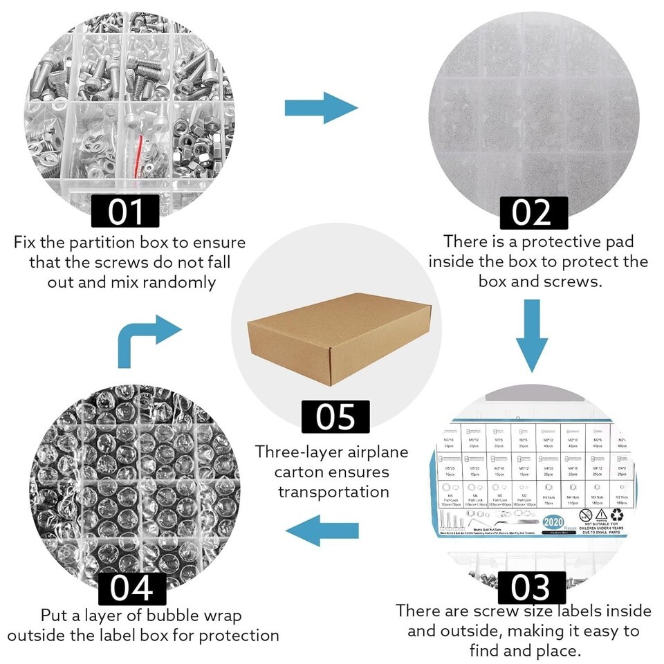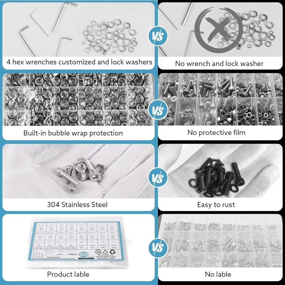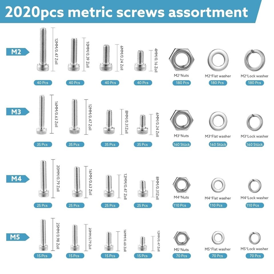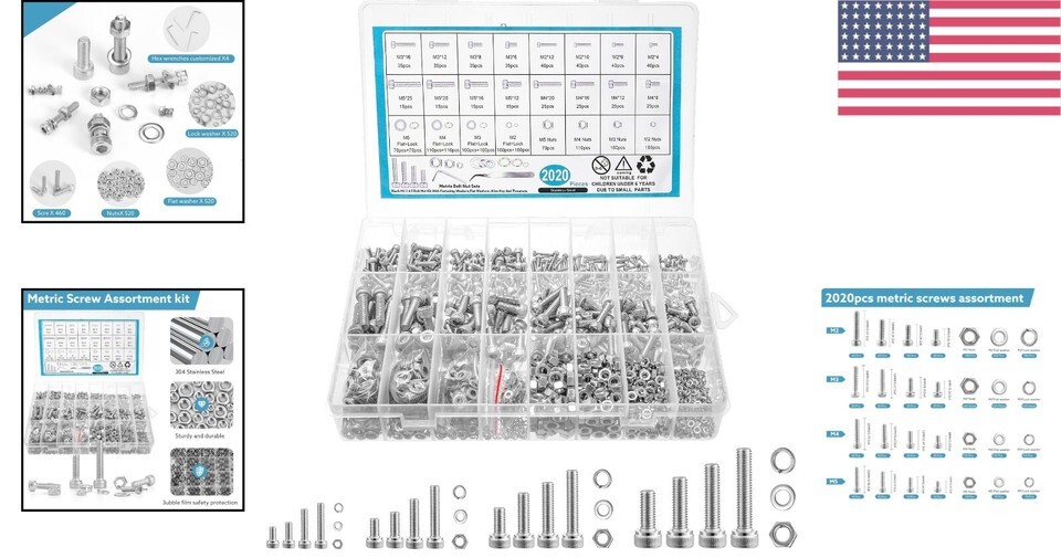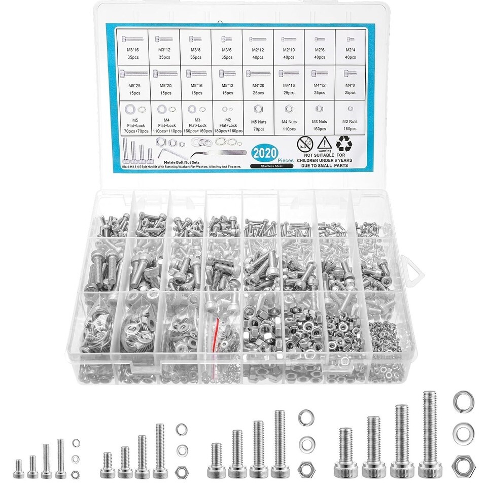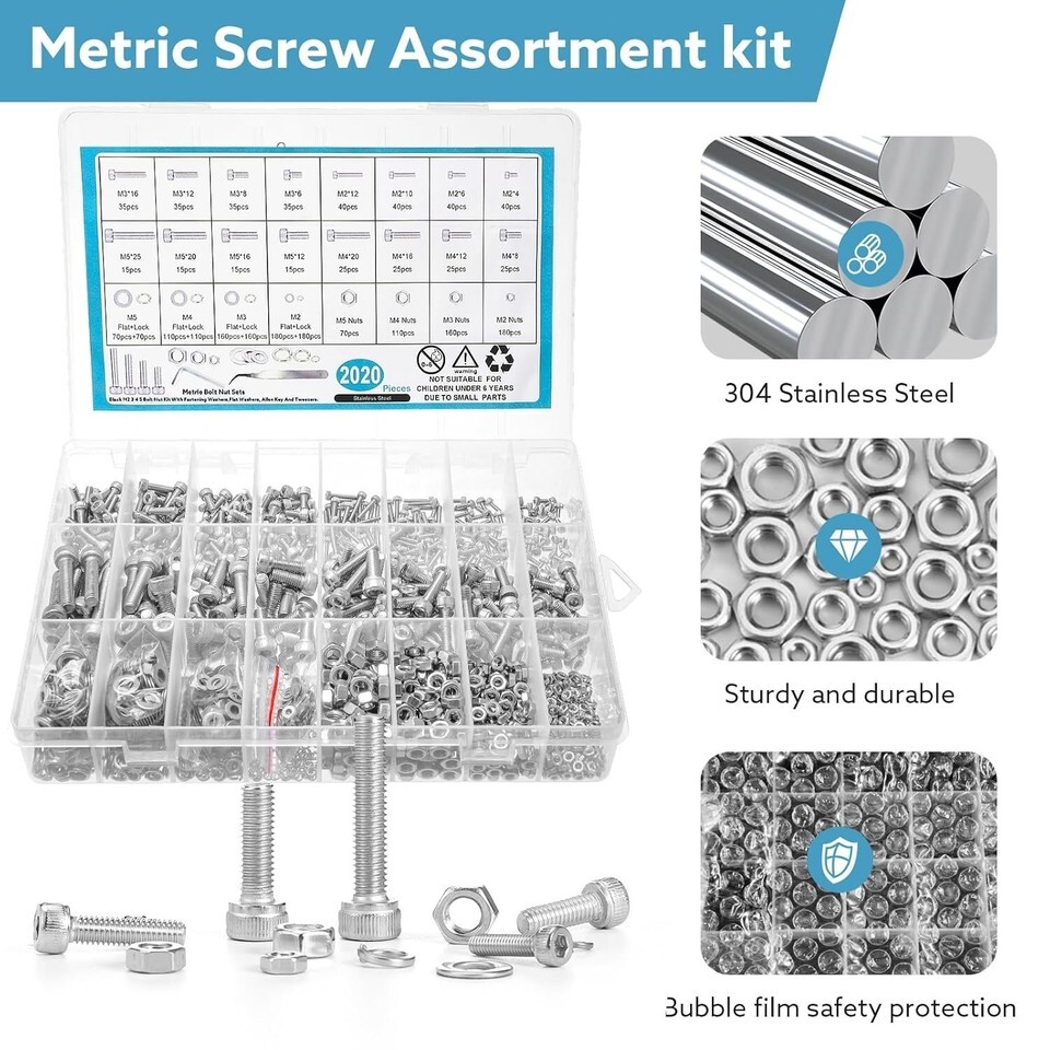 - 2024-Piece Metric Screw Assortment Kit - Durable Stainless Steel Bolts & Washers
