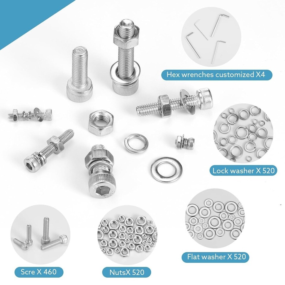 Quantity: 560 x screws, 560 x nuts, 520 x flat washers, 2 x customized hex wrenches, 1 x tweezers