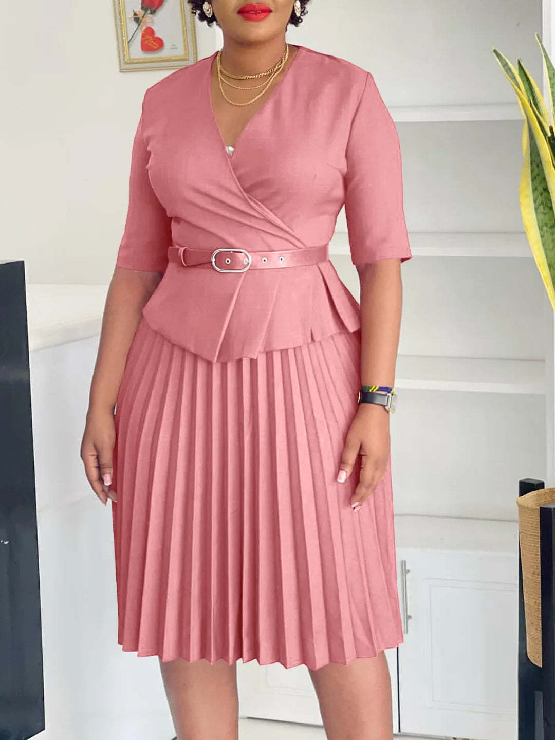 - 2025 New Fashion Plus Size Temperament Commuter V-neck Pleated Dress