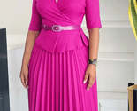 This sophisticated knee-length dress features a slight stretch polyester and spandex blend that ensures comfortable wear. Designed with a pleated silhouette and a flattering V-neckline, it embodies professional elegance ideal for the modern office woman. The half sleeves and sash detail add subtle refinement, while the zipper closure offers convenience. Crafted for summer with a regular fit and solid pattern, this garment combines timeless style with ease of movement. Originating from Guangdong, China, it suits the discerning woman who values both fashion and functionality.