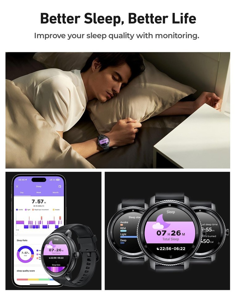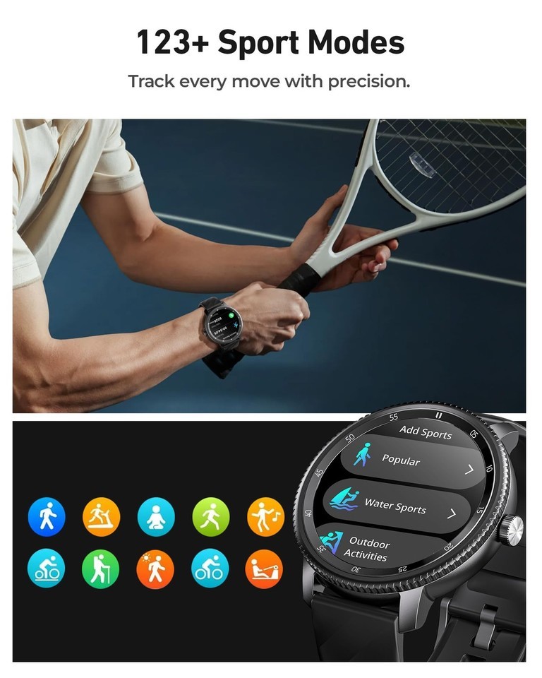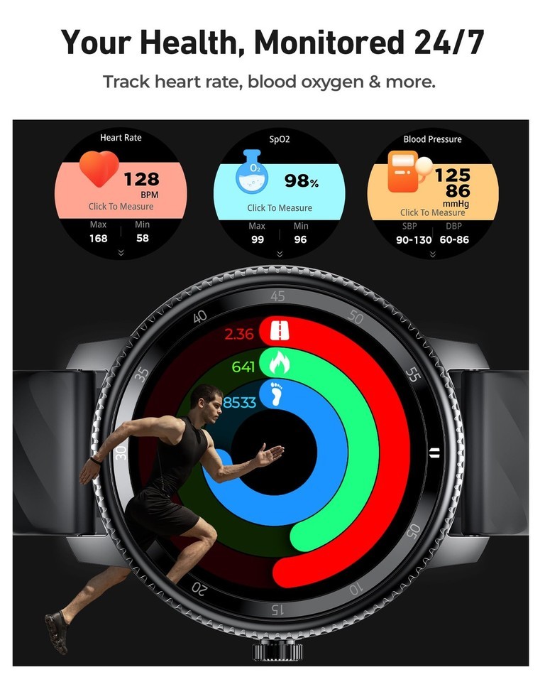 Track your heart rate, blood oxygen (SpO2), stress levels, and sleep with precision. Whether you're managing daily wellness or optimizing your workouts, this watch gives you the data to make smarter health decisions.