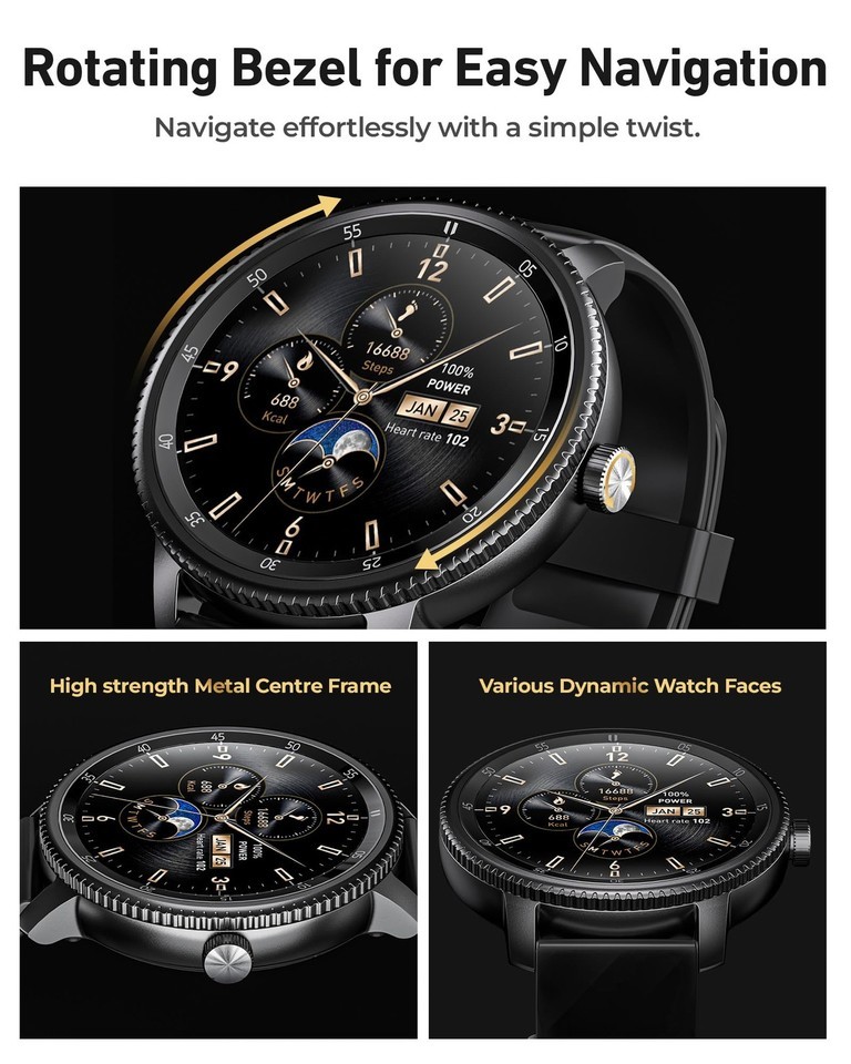 Navigate your watch like never before. The rotating dial design allows for effortless menu browsing and quick access to apps with a simple twist. Combine that with a responsive 1.46" HD touchscreen for a premium user experience.