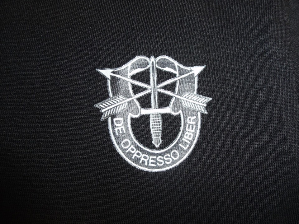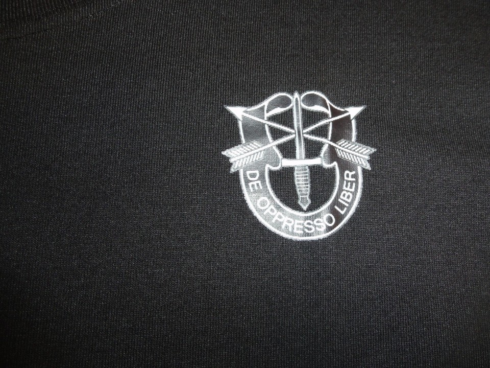 2025 U.S. ARMY SPECIAL FORCES SF BLACK PT SHIRT W/ LOGO MEDIUM DE OPPRESSO LIBER