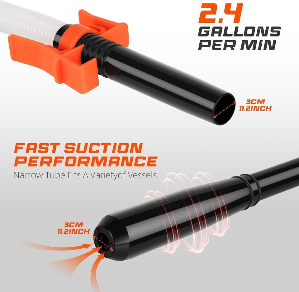 High-Efficiency Transfer: Equipped with a 39-inch non-toxic, odorless hose made of durable material for effective transfers, reaching tanks, engines, and tight spots with ease.