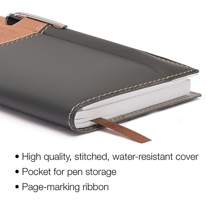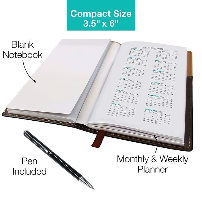 2026 Global Printed Products 3.5" x 6" Weekly Monthly Planner, Faux Leather Cover, Black/Brown (NRY26-PKT-BN-P)