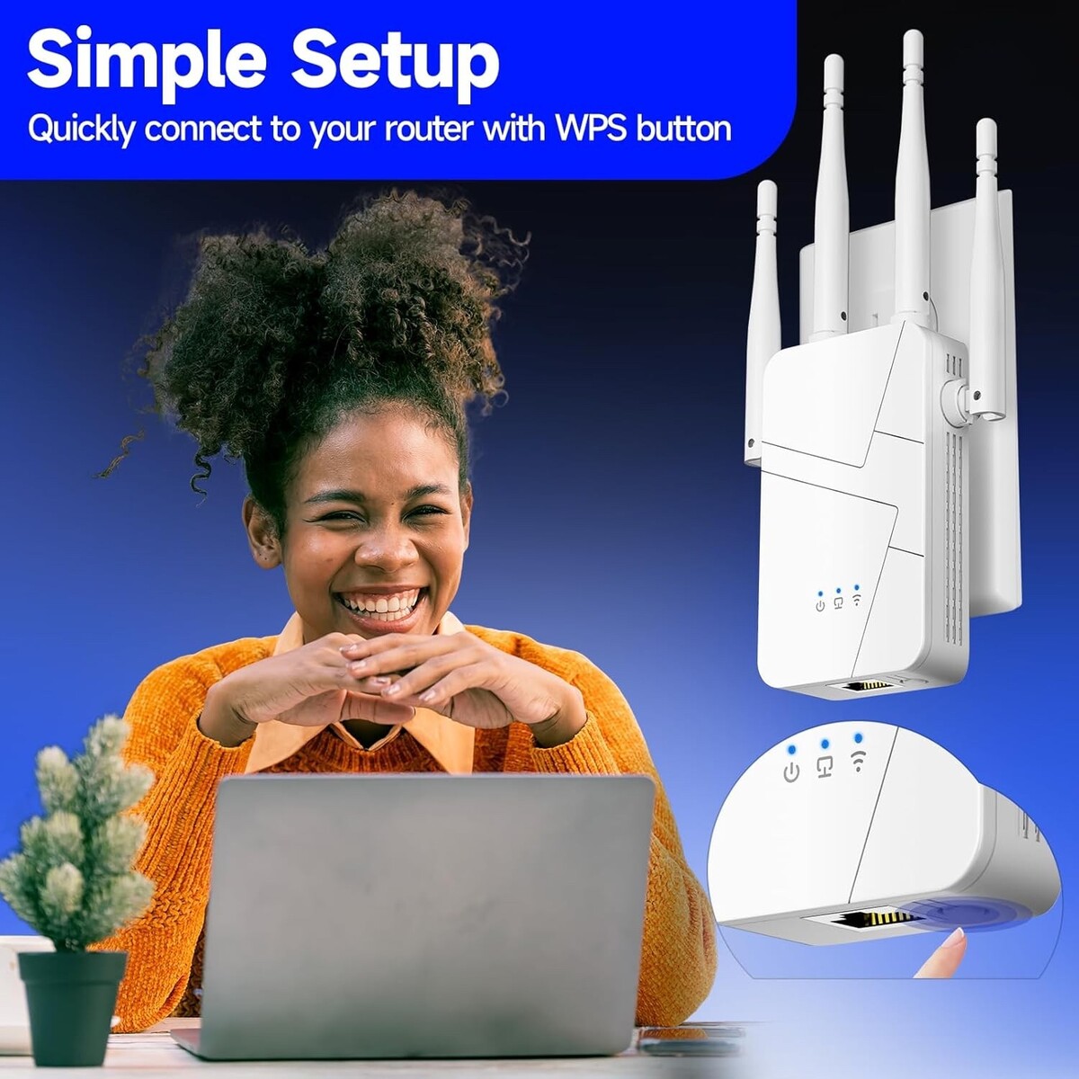 JUST PRESS AND THE SETUP DONE: 1-Click setup. All you need to do is press the WPS button on your router and the WPS button on our internert extender. Single-Tap WPS connects your device within 30 seconds