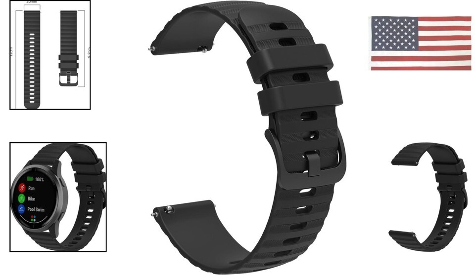 Elevate your style with this watch band designed for comfort and compatibility. This unisex black silicone band is perfect for an array of smartwatches including the Samsung Galaxy Watch series and Garmin models.