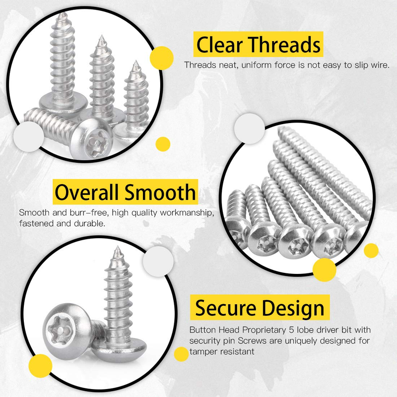 Hilitchi Stainless Steel Button Head Torx Silver Security Assortment Kit Sheet Metal Screws Anti-Theft Tamper Proof Screws with Stainless Screwdriver Bit T15