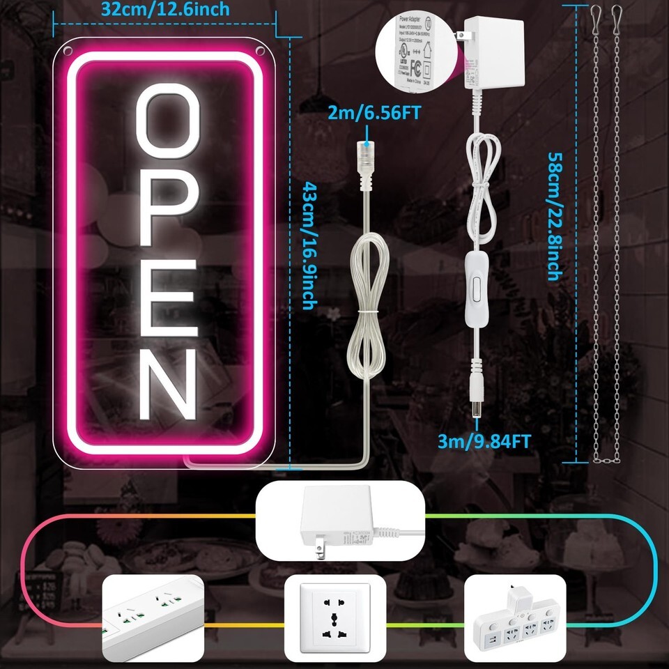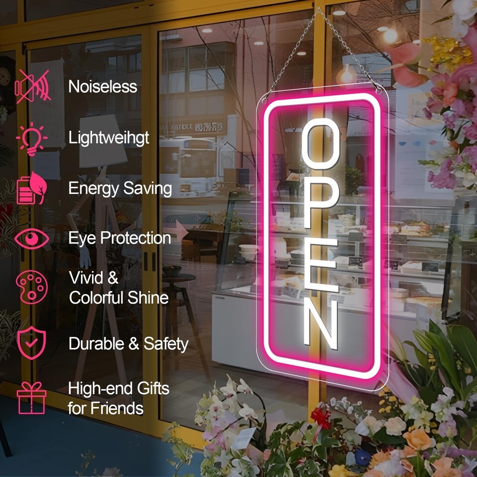 The perfect accessory for your personal business! We want your customers to know you are open and that they are welcome! Our ultra bright lights display with beautiful uniformity, simulating neon lights with all the benefits of LED lights.