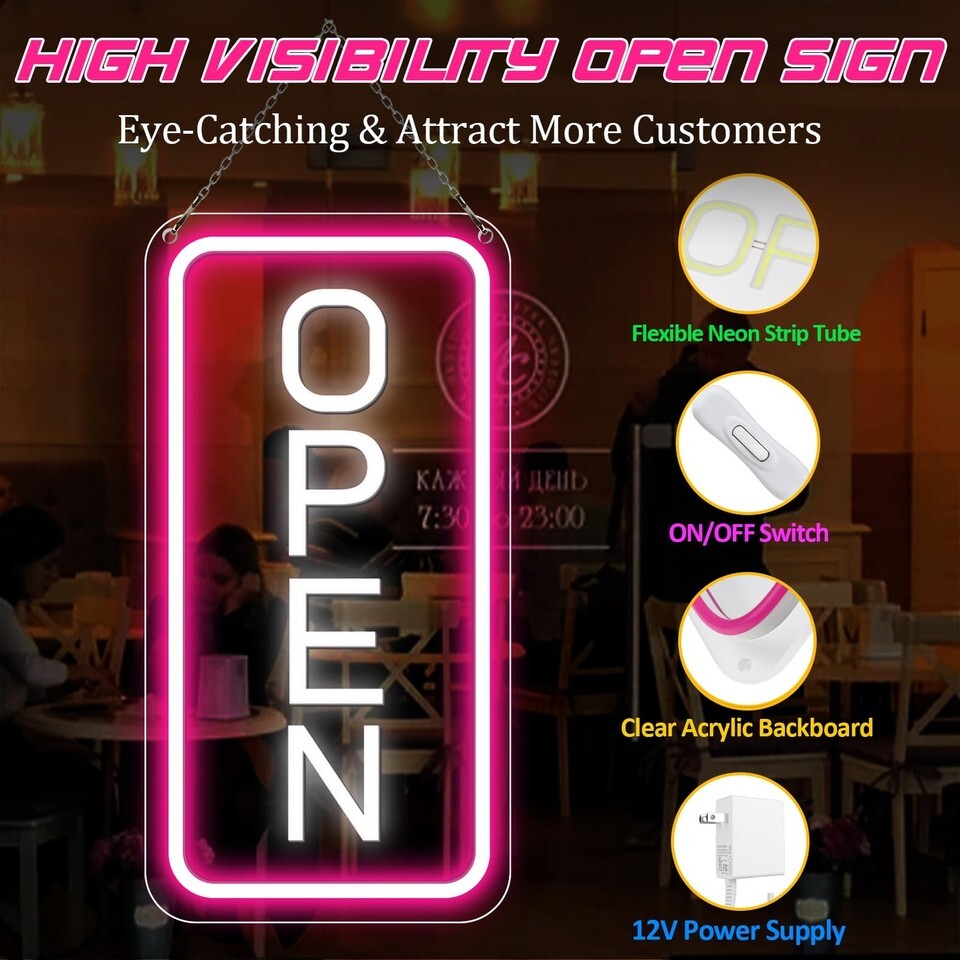 - 22.8"x11.8" Large LED Open Sign for Business Bar Retail Shop Light Ultra Bright