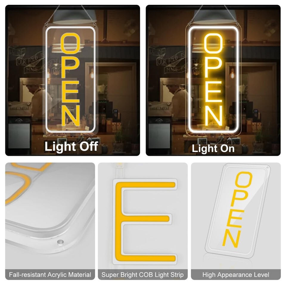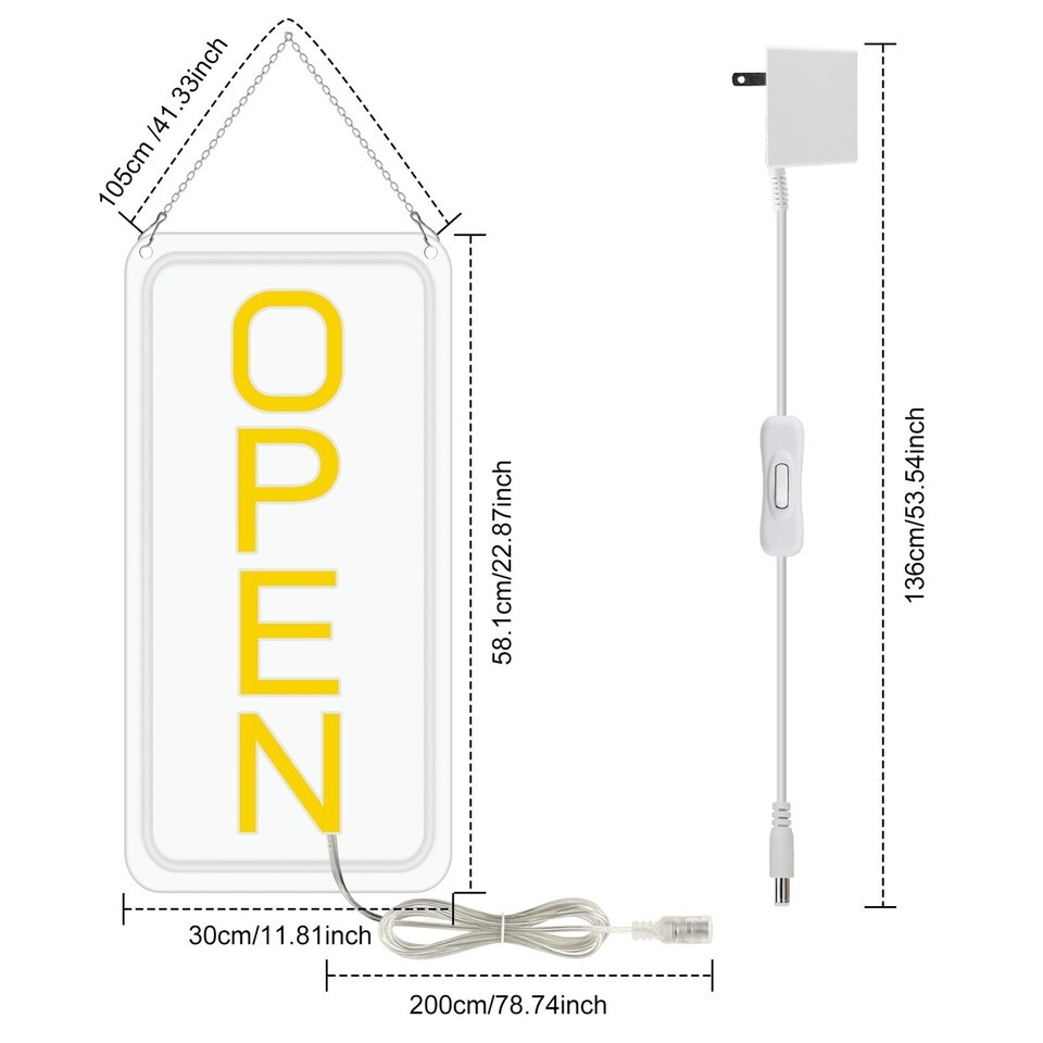 [ Ultra-bright ] : Neon open sign consists of a White and Yellow with COB chips; It is much brighter and most cost effective than regular LED offers a great visibility even in daylight