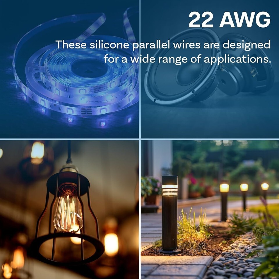 22 AWG Silicone Electrical Wire 2-Conductor Parallel Cable, Tinned Copper, Re...