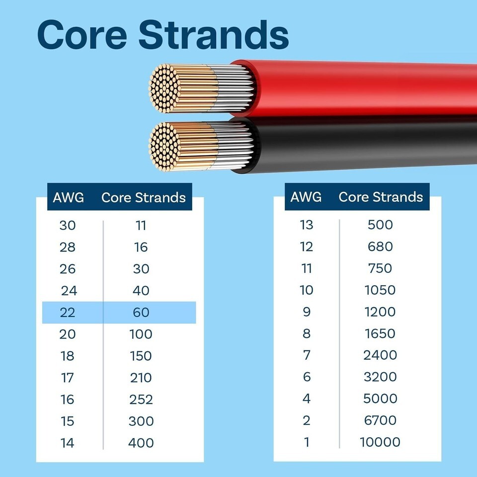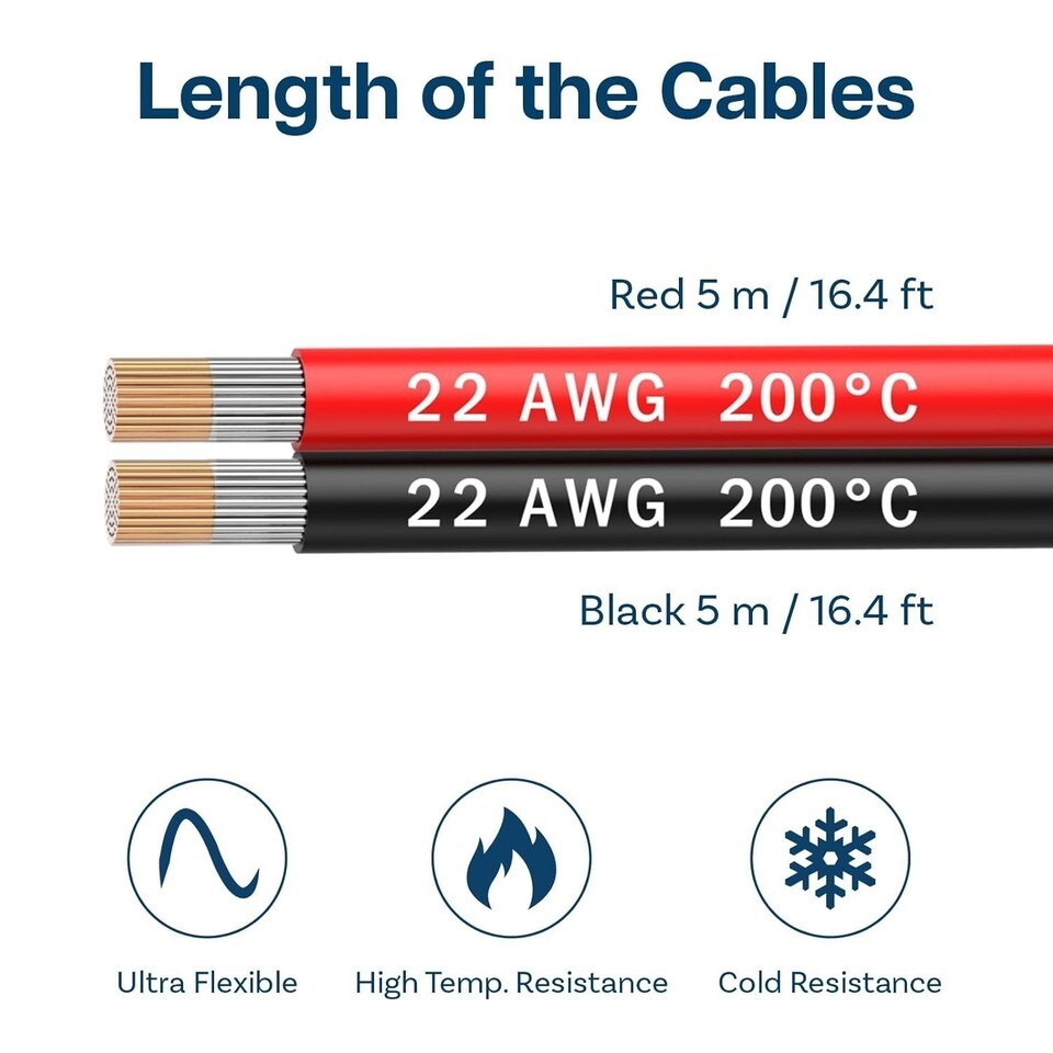 Package Includes: 2x 5m (16.4ft) wires?one red and one black?totaling 32.8 feet of quality 22 AWG wire, ideal for any application.