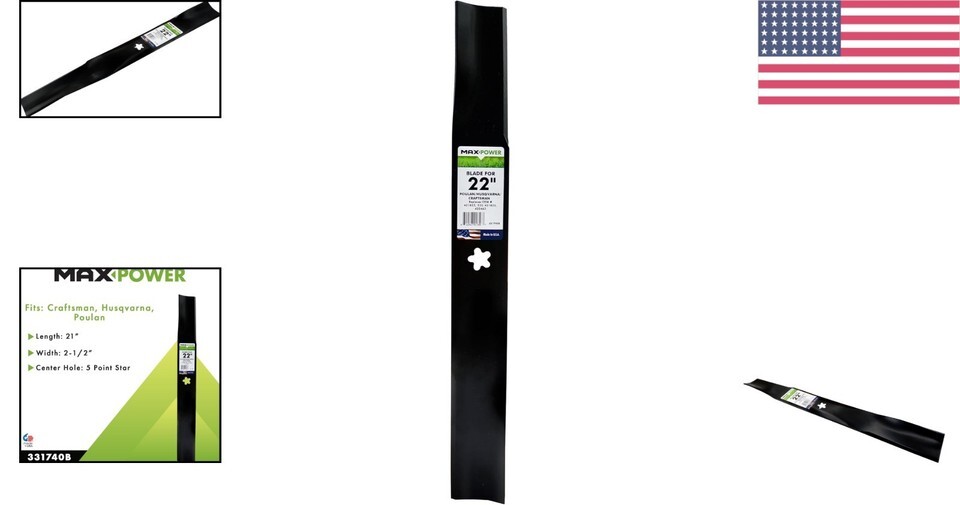 - 22" Lawn Mower Blade for Craftsman, Husqvarna, Poulan - USA Made, OEM Compatible