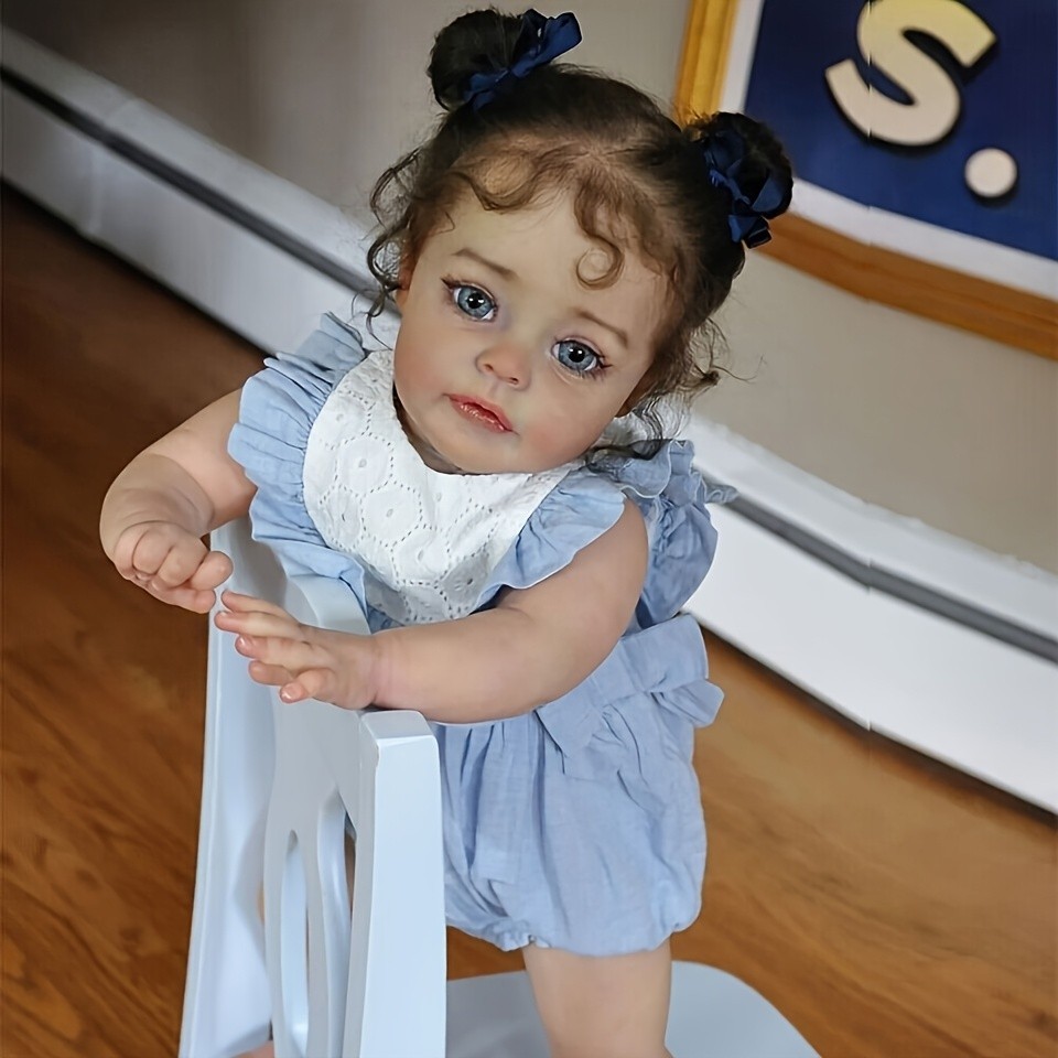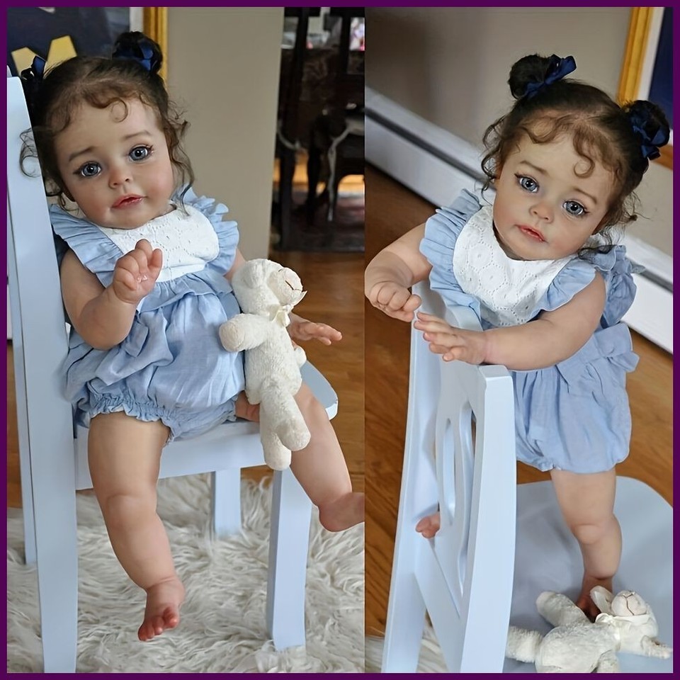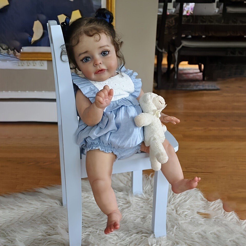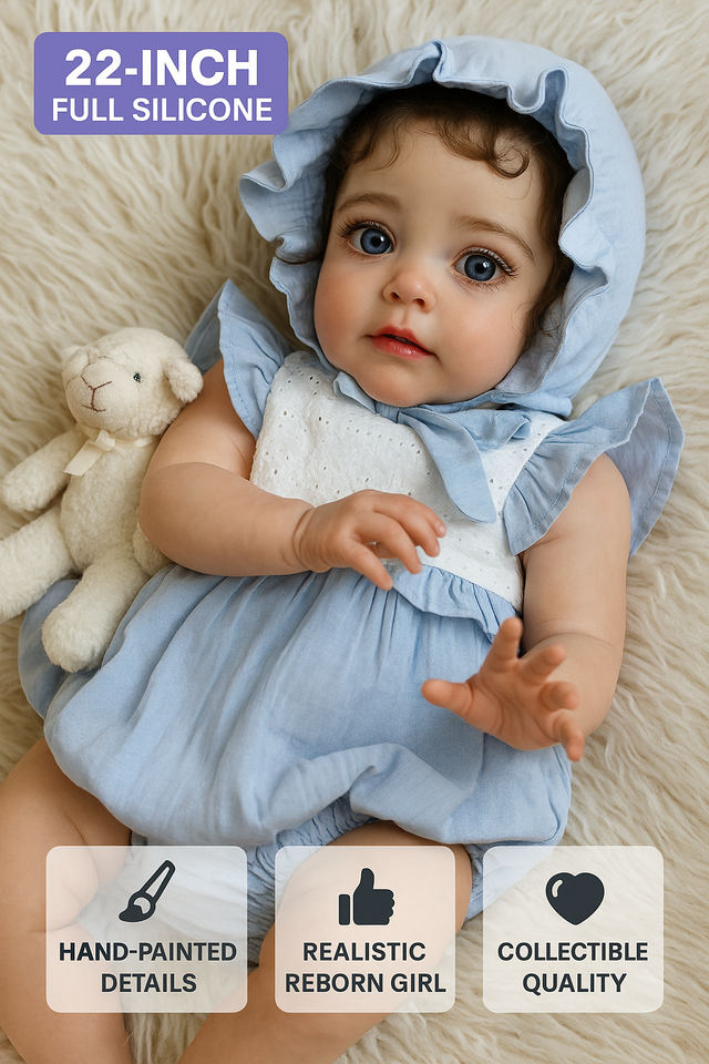 Experience the warmth of lifelike charm with this 22-inch Reborn Baby Girl Doll, crafted with soft full-body silicone for a realistic newborn feel. Each doll features hand-painted details, rooted hair, and anatomically correct features, making it perfect for collectors, kids, or educational use. Dressed in a charming blue and white outfit with matching bonnet, this baby doll adds comfort, style, and realism to any collection.