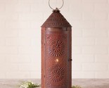 Here is a new primitive handcrafted lantern. this is made of tin and has a nice punched design around it,The punching casts a warm cozy glow on your wall. A terrific accent piece for your living area. It is Wired with one Candelabra socket that takes up to a 25 watts max. bulb , it has a 7-foot cord and line switch. And has a nice distressed rusty Tin finish. This is Handcrafted in the united states , Below is Full Description on it. And also check out my many other nice decor and lighting.