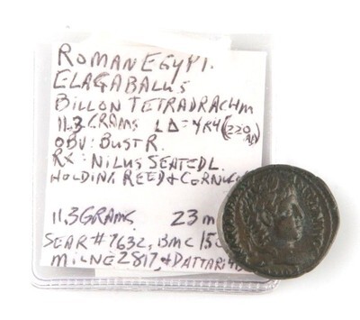 - 220 AD Roman Egypt Billon Tetradrachm Coin Elagabalus Nilus S-7632 D-4130