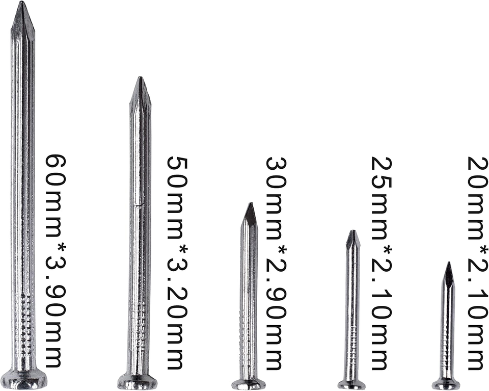 High-Quality Carbon Steel: Made from 55# carbon steel, these nails are sharp, durable, and resistant to bending, suitable for use on materials like wood, drywall, concrete, brick, plaster, and pine.