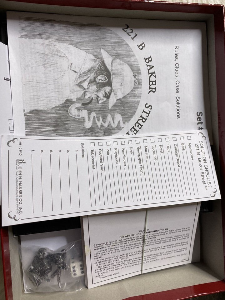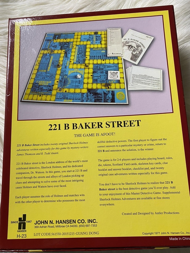 221B BAKER STREET SHERLOCK HOLMES DETECTIVE BOARD GAME 1977 - GREAT CONDITION.