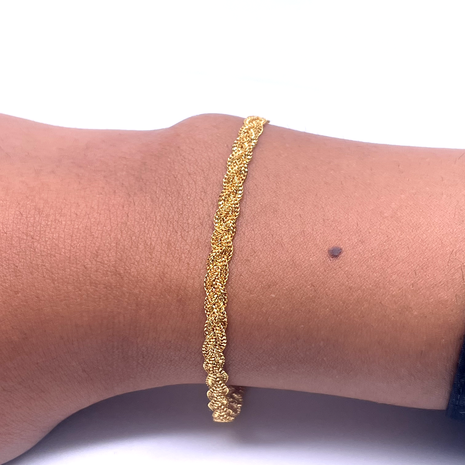 22ct Yellow Gold Braided Twist Flat Bracelet 6.5 Inches 4mm width