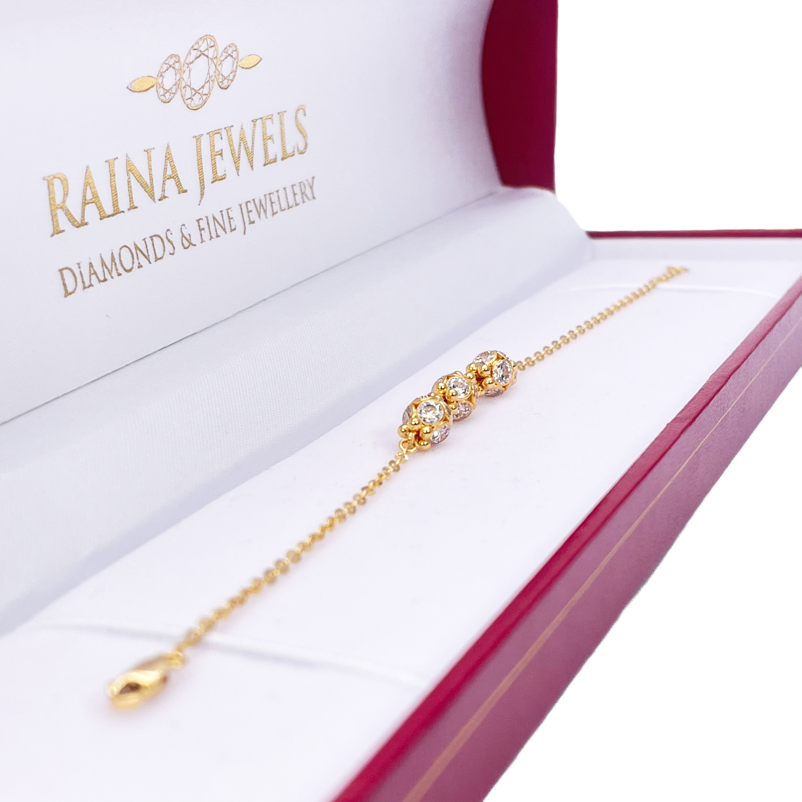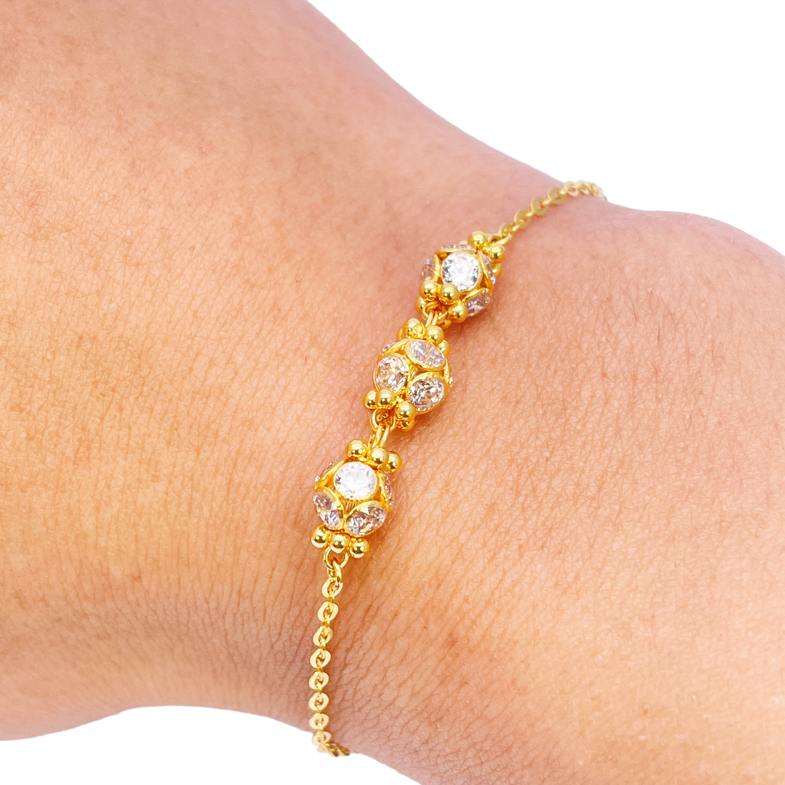 - 22ct Yellow Gold Sparkly Glitter Ball Ladies Bracelet 7 inches