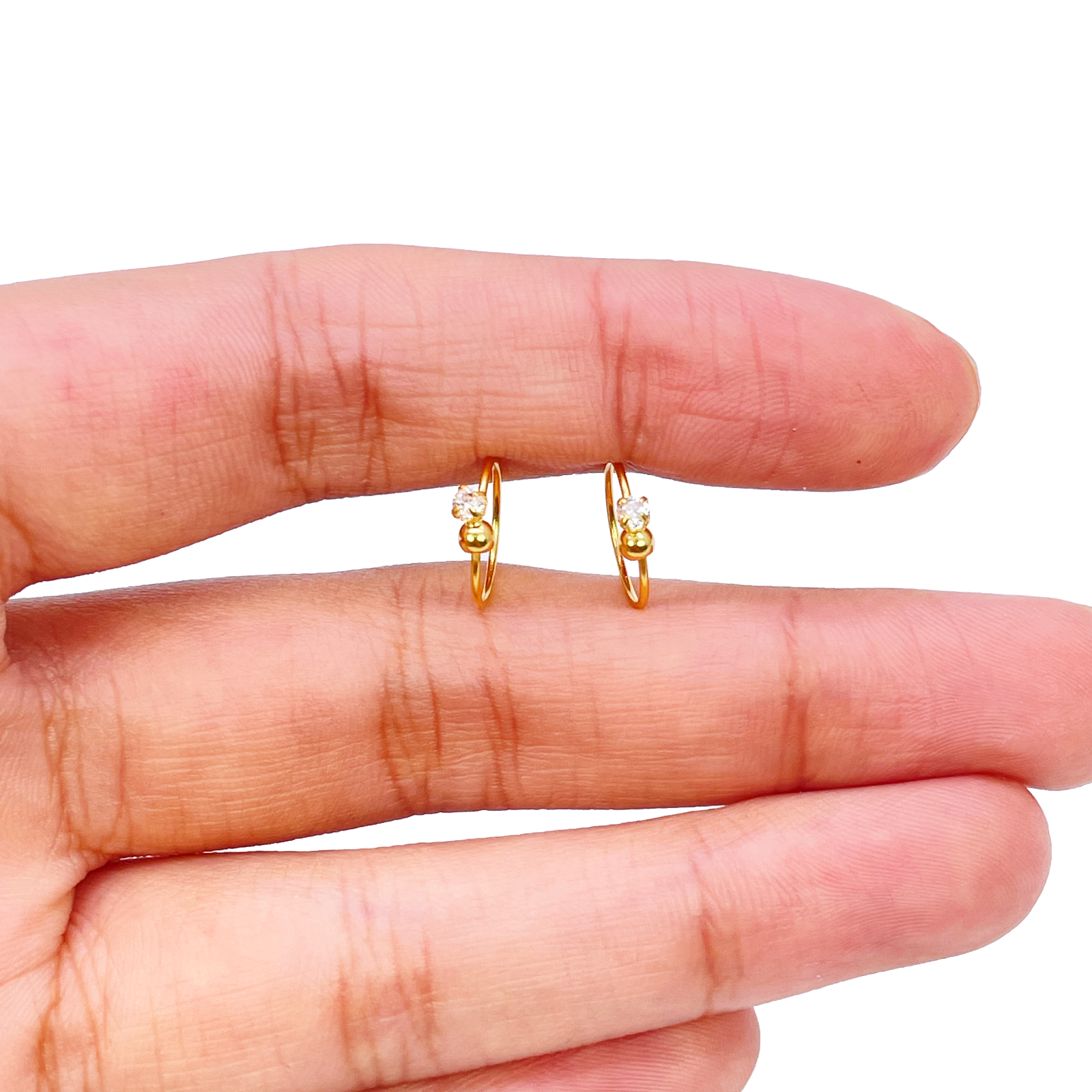 - 22ct Yellow Gold Tiny Sparkly Hoop Huggie Children's Earrings 9.7mm Length