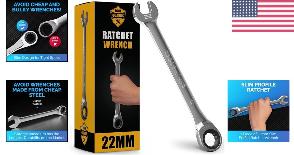 - 22mm Ratcheting Wrench - Durable Alloy Steel with Box End Design for Precision