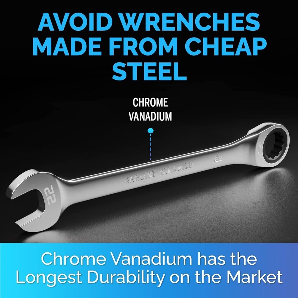 22mm Ratcheting Wrench - Durable Alloy Steel with Box End Design for Precision