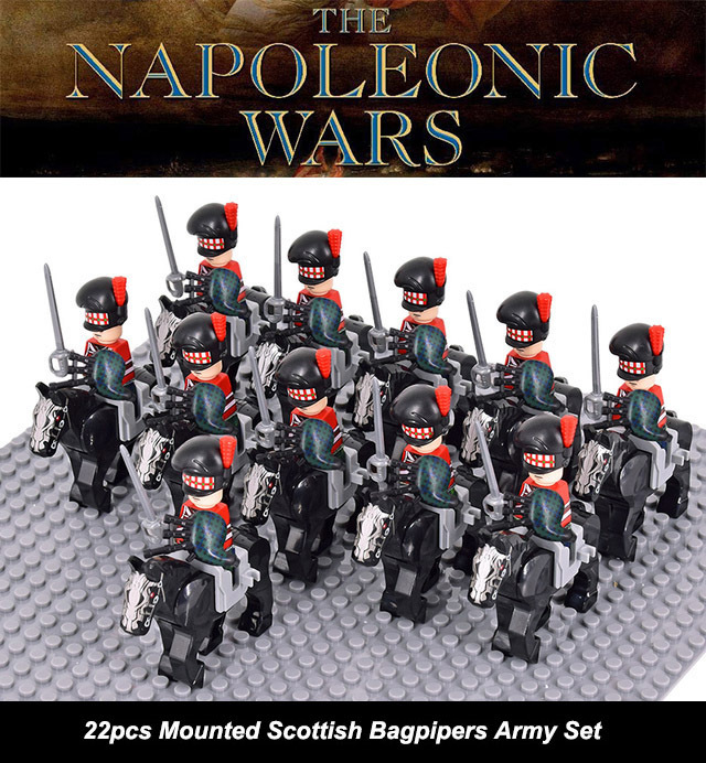- 22pcs Napoleonic Wars Mounted Scottish Bagpipers Army Minifigure Toys Gift