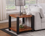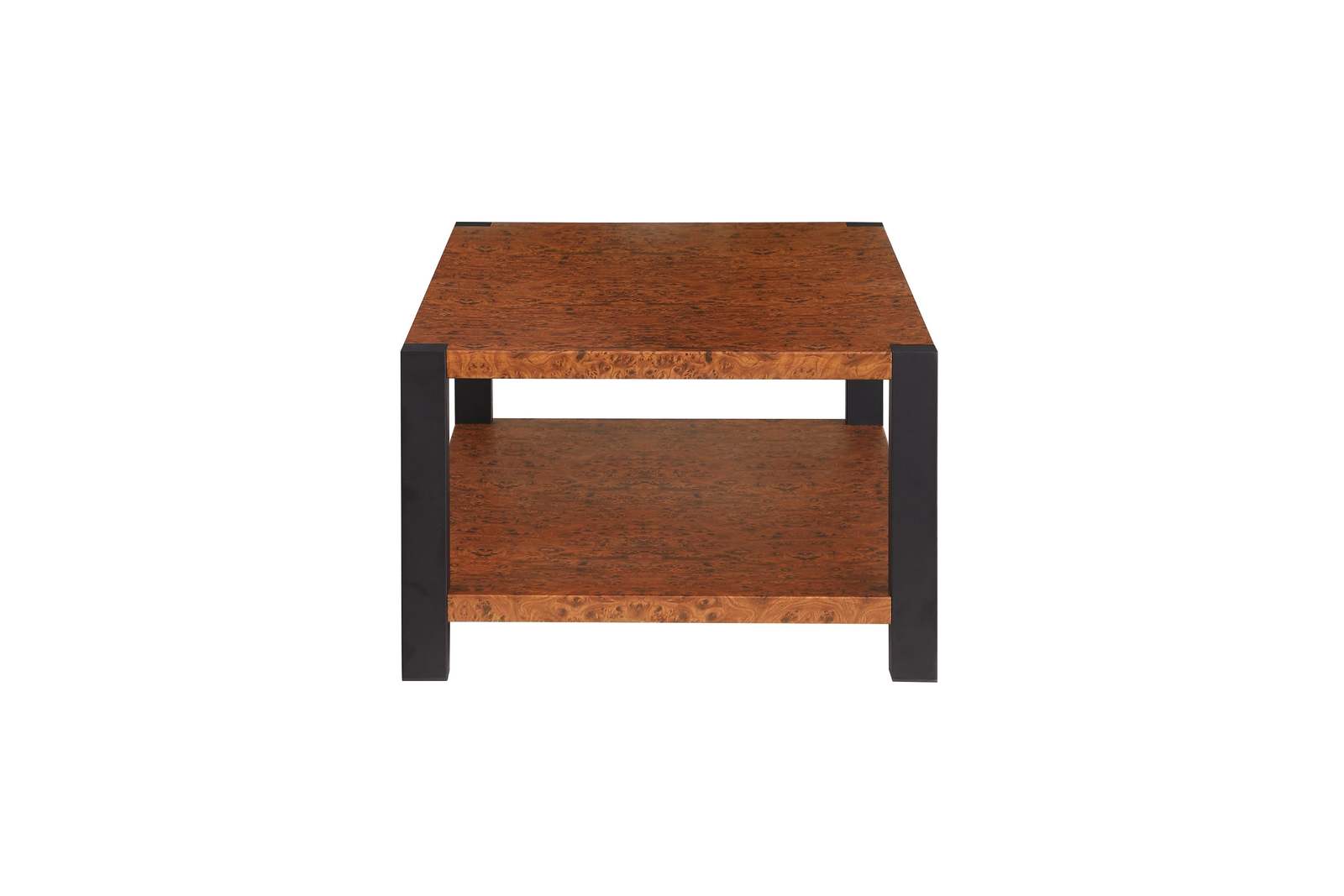 - 23.6" Square Burl Wood Metal Top Matte Black Double Layer End Table