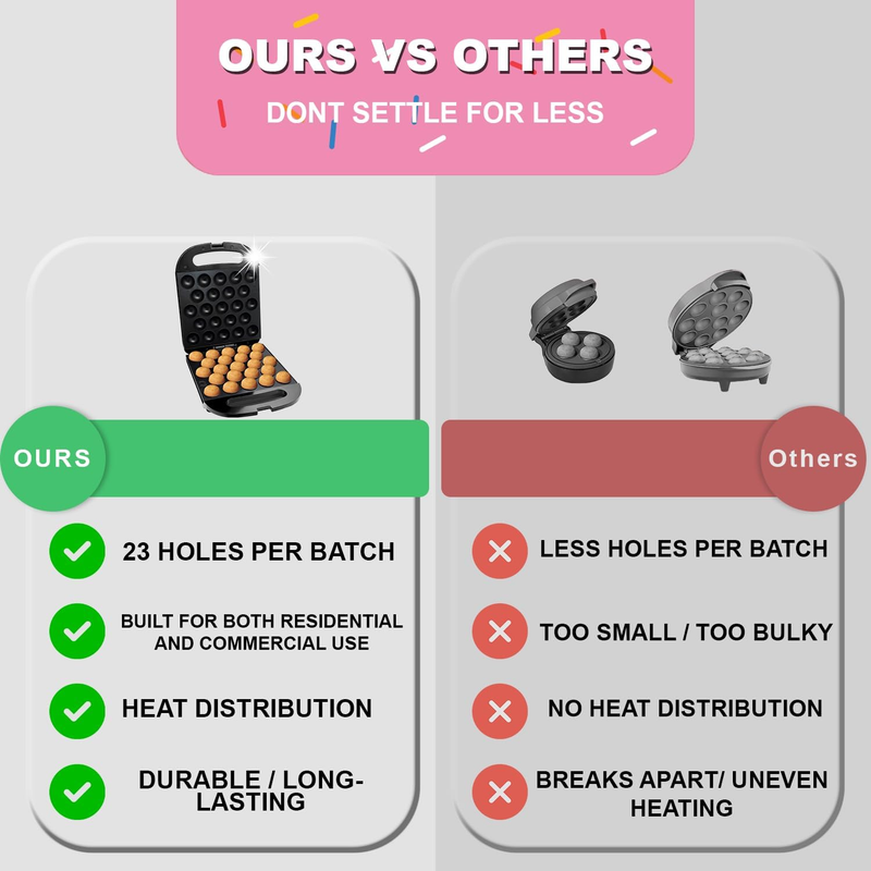 Bake 23 Cake Pops at Once - Perfect for Parties Big Batches: No more waiting or baking in small batches! This electric cake pop maker features 23 individual molds so you can whip up two dozen cake pops in just minutes. Ideal for birthdays, holidays, family gatherings, and school events?bake more in less time and keep everyone smiling.