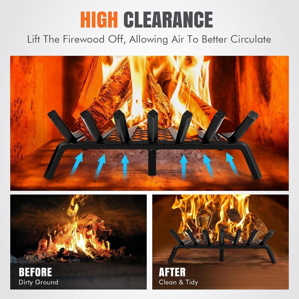 High Clearance for Air Circulation: Our fireplace log grates have a 4.5-inch high between the fire grates and the floor lift the firewood off the chimney or hearth floor, which makes the air circulation better and firewood catching fire easier