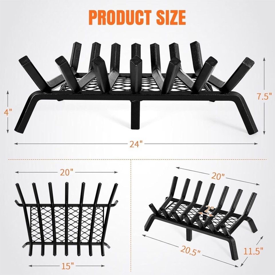 - 24 Inch Fireplace Grates Firewood Fire Wood Log Holder Rack with Ember Retainer