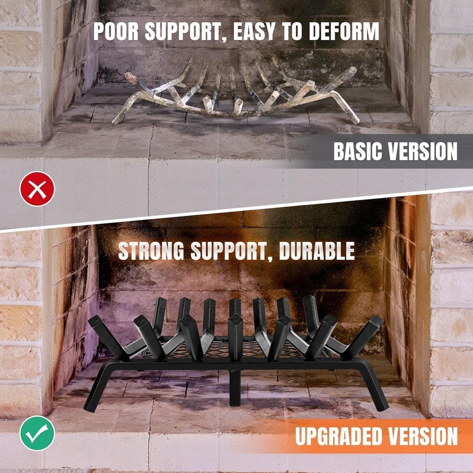 Multi-purpose Use: This large heavy-duty fireplace log holder is suitable for both indoor decorative wood-burning fireplaces and outdoor durable fire pit grates. It's convenient to bring this fireplace log grate to your indoor fireplace chimney, outdoor fire pits, backyards patios wood burning stoves, etc