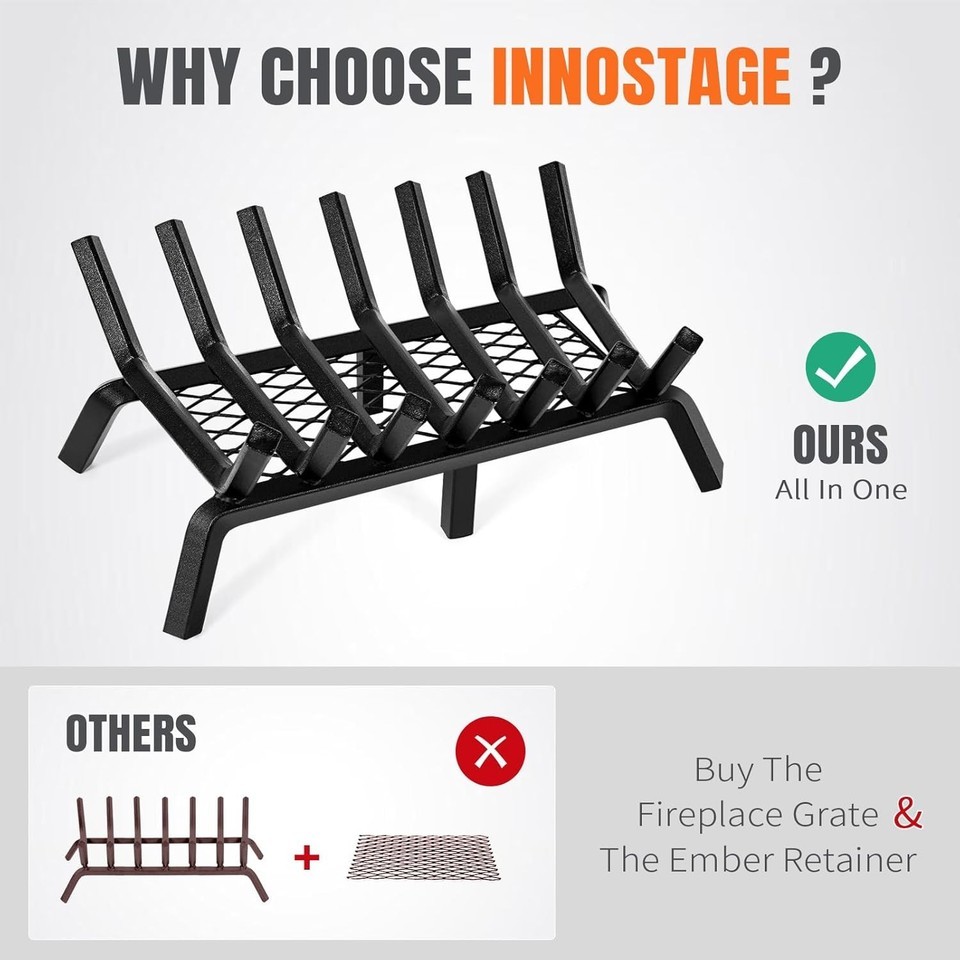Fireplace Grate with Ember Retainer: Our fireplace grates with a ember retainer mesh, prevents logs and debris from falling. This fireplace rack not only enhances the combustion of firewood but also simplifies fireplace cleaning