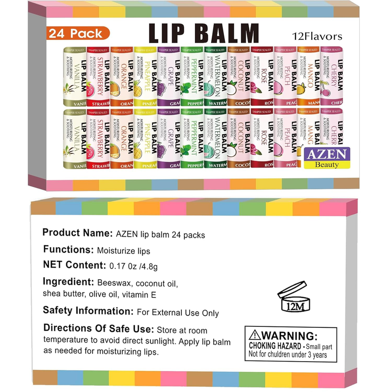 24 Pack Lip Balm, Natural Lip Balm Bulk, Lip Care Product, Moisturizing Lip Balm
