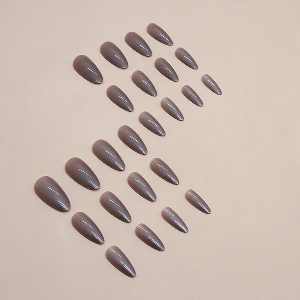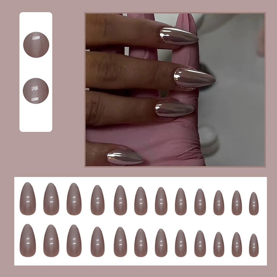 Packaging A box of 24 pcs medium almond press on nails, 24pcs jelly glues, 1 small wooden stick, 1 nail file, and alcohol bag. Our complimentary set does not include glue (if you want the fake nails to last on the nails, we suggest you use your own prepared glue)