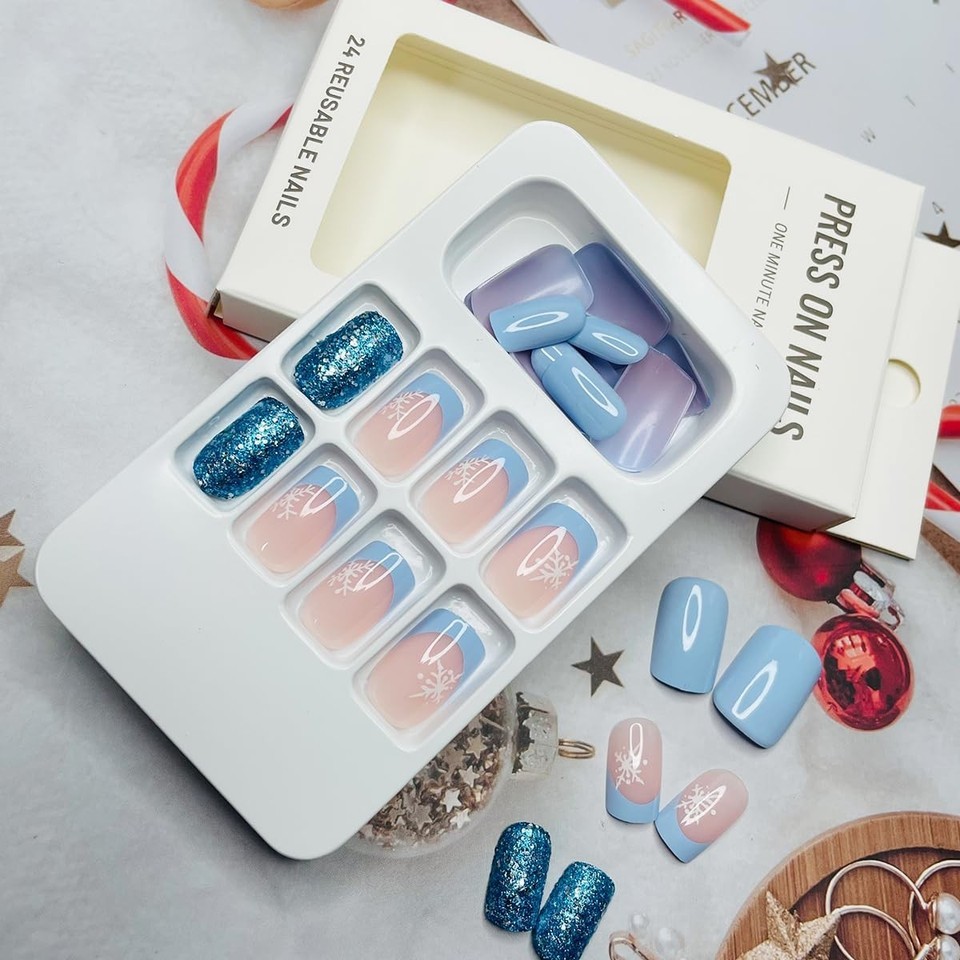 Easy to ApplyChristmas fake nails with elk snowflake designs, just choose the nail piece that suits you, polish the nail bed, paste the jelly glue we give away, and press trendy nails for 30 s to get the natural manicure that girls like. Due to the limited use of jelly glue, we recommend that you use your own glue.