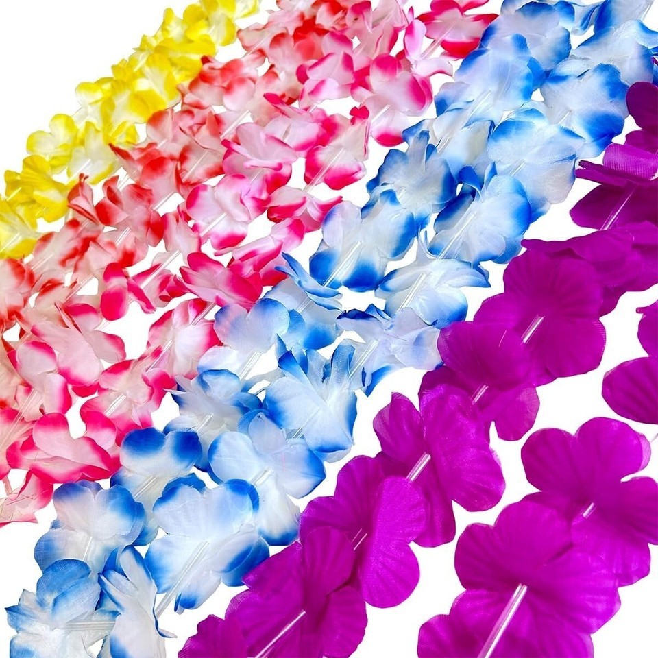 24 Hawaiian leis necklaces made of high-quality silk flowers, each measuring 39 inches in length